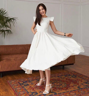 التنورة الواسعة تُضفي على الفستان إطلالة رومانسية وأنثوية. تتيح هذه القصّة حرية الحركة وتُضفي لمسةً من الأناقة، مع تحديد دقيق للقوام.