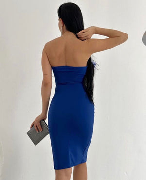 هذا الفستان متوسط الطول للمناسبات، بأكمامه وريشه المزخرف على الكتفين، مثالي للتألق في المناسبات الخاصة أو الأمسيات الأنيقة. زيّنيه بمجوهرات فاخرة وحذاء بكعب عالٍ لإكمال إطلالتك الراقية التي لا تُنسى.
