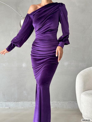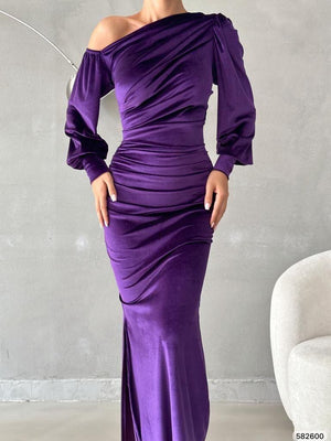 هذا الفستان المخملي الطويل والضيق خيارٌ ممتازٌ للمرأة التي ترغب في التألق والشعور بالأناقة في المناسبات الخاصة. مع إكسسواراتٍ دقيقة، مثل حقيبة يدٍ براقةٍ ومجوهراتٍ فاخرة، سيضمن هذا الفستان إطلالةً راقيةً لا تُنسى.