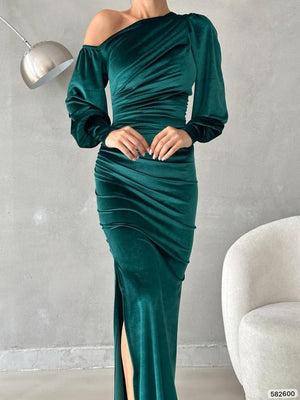 هذا الفستان المخملي الطويل والضيق خيارٌ ممتازٌ للمرأة التي ترغب في التألق والشعور بالأناقة في المناسبات الخاصة. مع إكسسواراتٍ دقيقة، مثل حقيبة يدٍ براقةٍ ومجوهراتٍ فاخرة، سيضمن هذا الفستان إطلالةً راقيةً لا تُنسى.