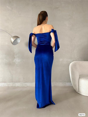 هذا الفستان المخملي الطويل والضيق خيارٌ ممتازٌ للمرأة التي ترغب في التألق والشعور بالأناقة في المناسبات الخاصة. مع إكسسواراتٍ دقيقة، مثل حقيبة يدٍ براقةٍ ومجوهراتٍ فاخرة، سيضمن هذا الفستان إطلالةً راقيةً لا تُنسى.