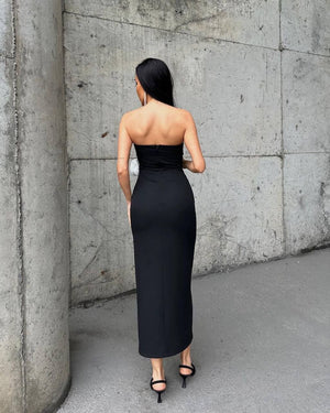 هذا الفستان الضيق بدون أكمام، ذو فتحة عند الساق، مثالي للنساء اللواتي يرغبن في التألق والشعور بالجاذبية في المناسبات الخاصة. مع الاهتمام بأدق التفاصيل، كالأحذية الأنيقة والمجوهرات الفاخرة، سيخطف هذا الفستان الأنظار بلا شك.