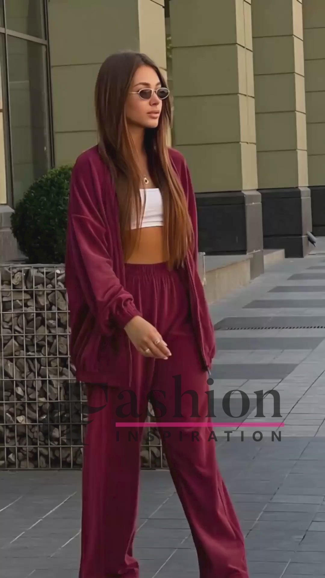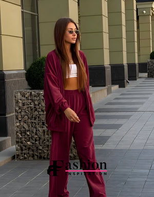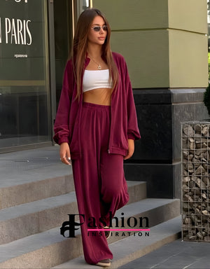 • Set 2 piese: bluză cu fermoar + pantaloni largi