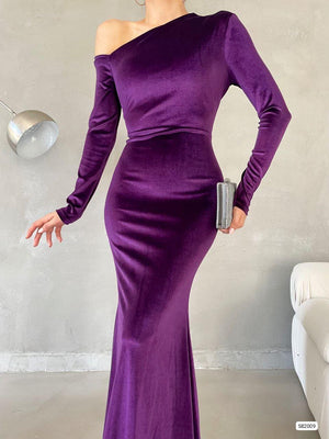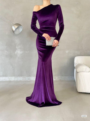 هذا الفستان المخملي الطويل والضيق خيارٌ ممتازٌ للمرأة التي ترغب في التألق والشعور بالأناقة في المناسبات الخاصة. مع إكسسواراتٍ دقيقة، مثل حقيبة يدٍ براقةٍ ومجوهراتٍ فاخرة، سيضمن هذا الفستان إطلالةً راقيةً لا تُنسى.