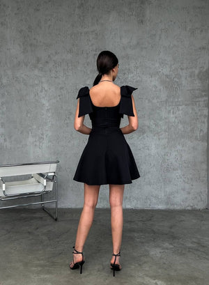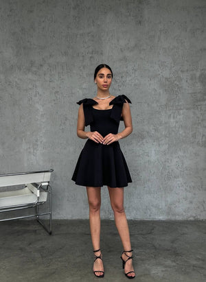 هذا الفستان القصير بعقدتين على الكتف وتنورة واسعة، مثالي للمناسبات الخاصة والحفلات والنزهات الخارجية أو حتى لموعد رومانسي. تصميمه الأنثوي وتفاصيله الجذابة ستمنحكِ إطلالة مميزة وساحرة.