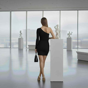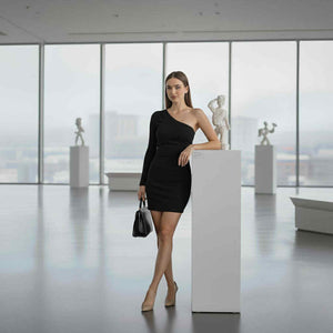 فستان أوليفيا بلاك هو الخيار الأمثل للمرأة التي تعشق الأناقة العصرية والرقي. مع تصميم غير متماثل و أ كم طويليسلط هذا الفستان الضوء على خط الكتف والصورة الظلية، مما يوفر مظهرًا راقيًا وحسيًا في نفس الوقت.