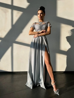 Тази вечерна рокля от бродирана дантела и широка еластична тафта е идеална за жени, които искат да блеснат и да се чувстват като истинска кралица на специални събития. С внимание към детайла и подходящи аксесоари, тази рокля ще привлече погледите и ще създаде незабравими спомени.