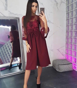 Тази миди рокля с бродирана горна дантела и долна част с троен воал е идеална за елегантни партита, коктейли, сватби или други специални събития, на които искате да блеснете и да впечатлите. Неговият изтънчен и изискан дизайн ще ви накара да се чувствате очарователни и елегантни във всеки един момент.