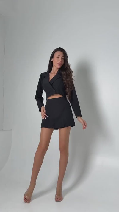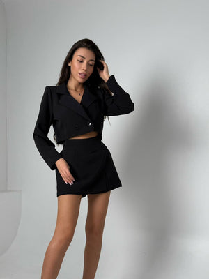 Set format din sacou scurt tip blazer și pantaloni scurți eleganți