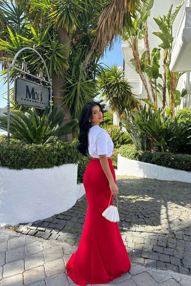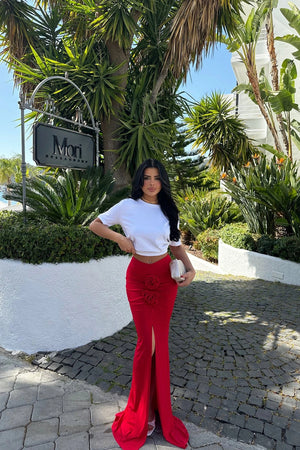 Тази дълга вталена пола, с цепка на крака и две апликирани рози, е перфектна за дневни или вечерни събития, романтични срещи или други специални поводи, където искате да блеснете и да се почувствате елегантни и женствени.