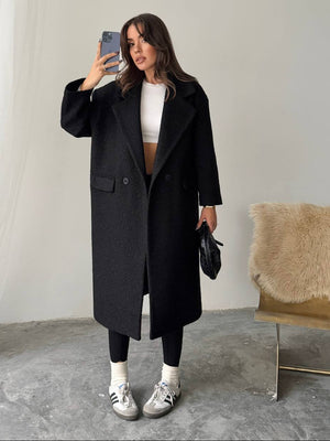 📏 Recomandare styling: Poartă-l cu blugi evazați și botine pentru un look urban relaxat, sau peste o rochie și cizme lungi pentru o apariție feminină și sofisticată.