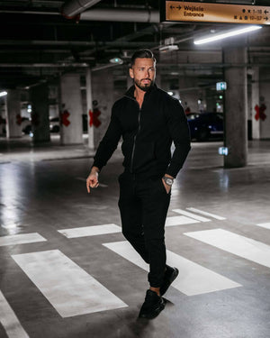 Мъжкият анцуг с дълъг ръкав, горнище с цип и дълги панталони е практичен и удобен избор за ежедневни дейности или моменти на релакс. Ето подробно описание на това: