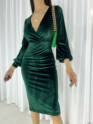 Изработена от еластично и удобно кадифе, роклята прилепва по тялото, предлага свобода на движение и оптимален комфорт. Цепката на крачола добавя нотка стил и позволява леко динамична визия. Цветовете могат да варират според предпочитанията, от класически нюанси като черно, тъмно зелено или наситено червено до пастелни или живи цветове.