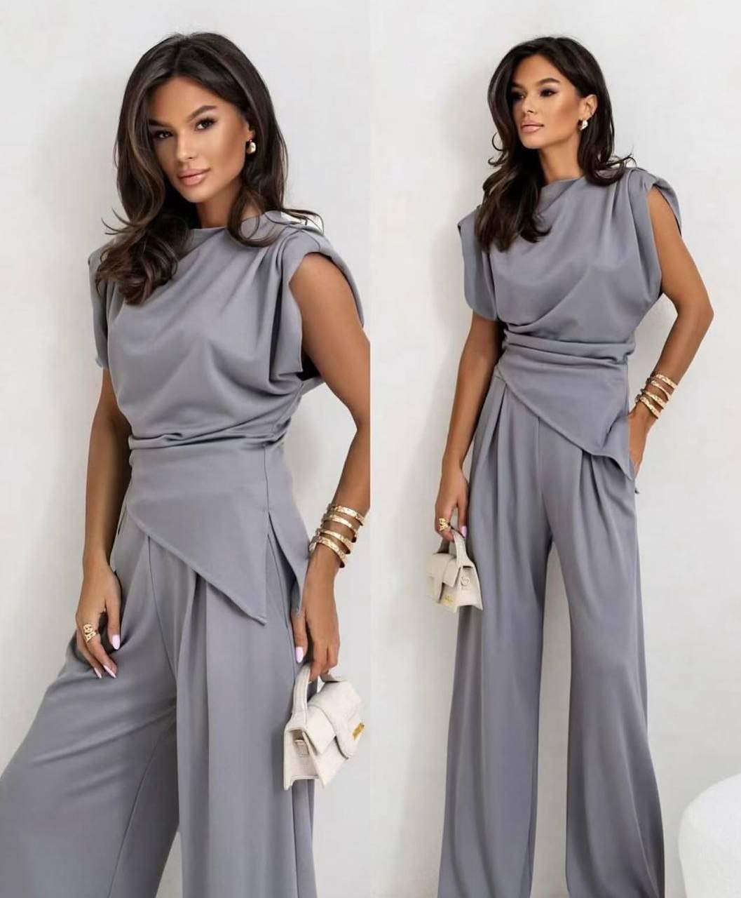 Това облекло е перфектният избор за жени, които искат универсален тоалет, подходящ както за изискани събития, така и за специални излизания. Може да се допълва със сандали на ток, минималистични бижута и елегантен клъч за изискана и модерна визия.