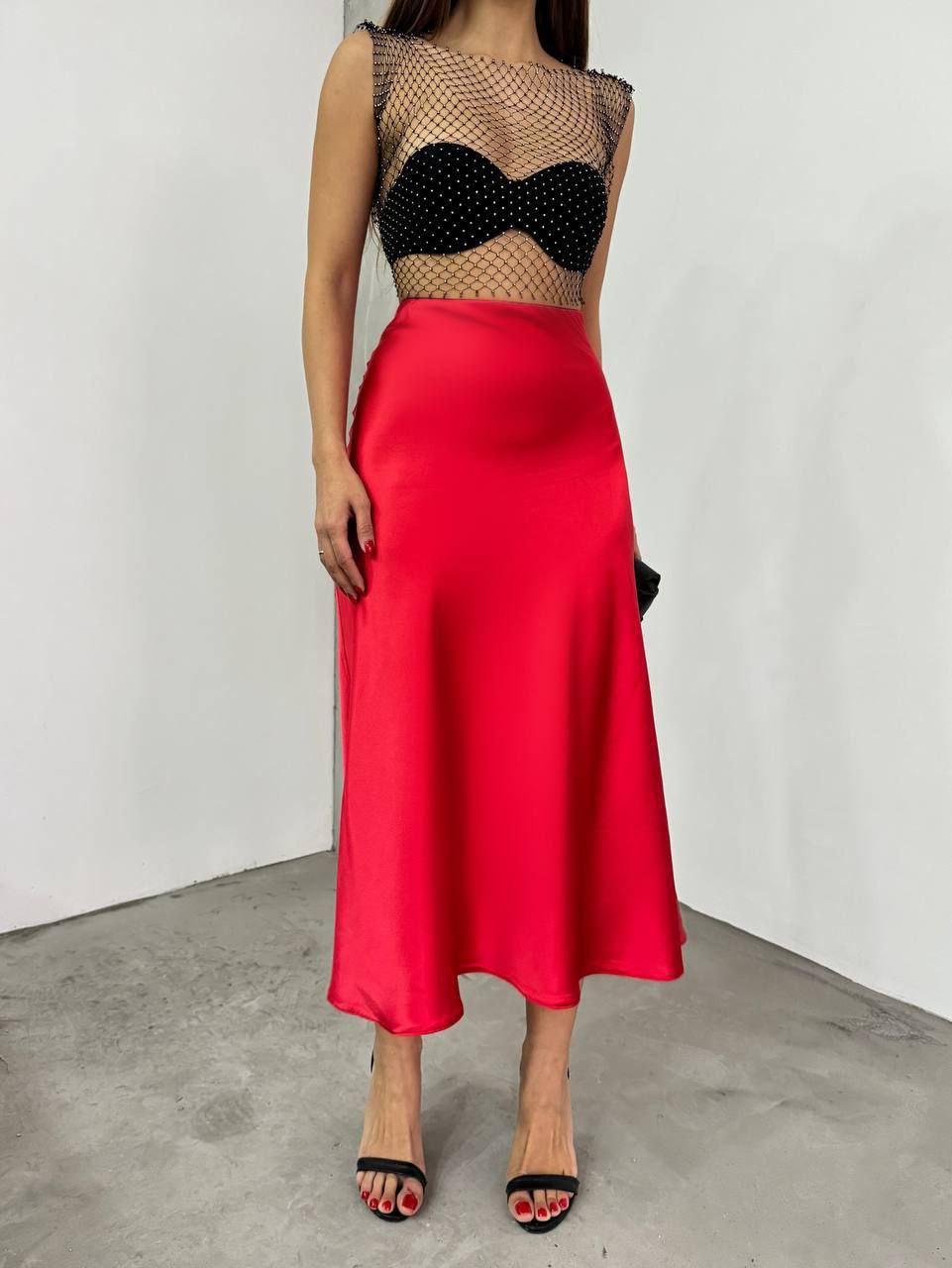 Тази еластична миди пола от тафта с полуталия е идеална за различни събития, като сватби, партита, коктейли или дори ден в офиса. Неговата елегантност и гъвкавост го правят основна част от гардероба на всяка съвременна жена.