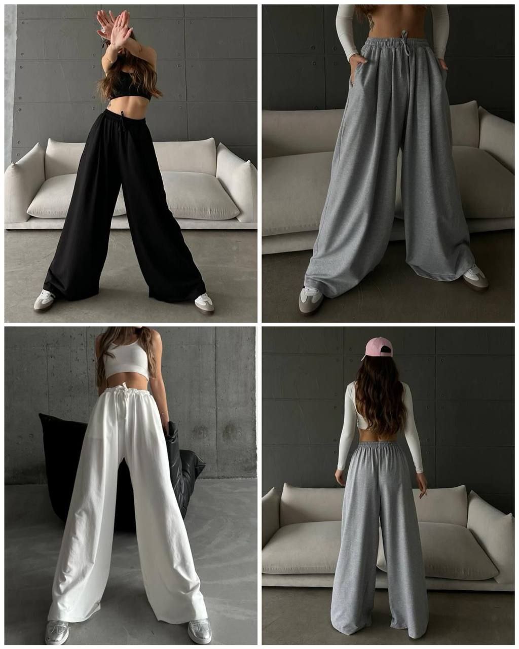 Дългите разкроени панталони са идеални за съчетаване с вталени блузи или елегантни ризи, в зависимост от повода. Могат да се носят както с обувки на ток, за да се постигне максимален ефект на издължаване на краката, така и със спортни обувки или сандали за небрежно-шик визия.