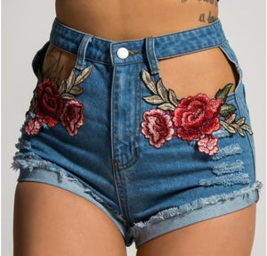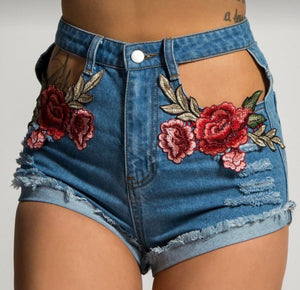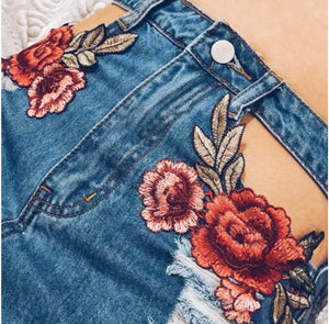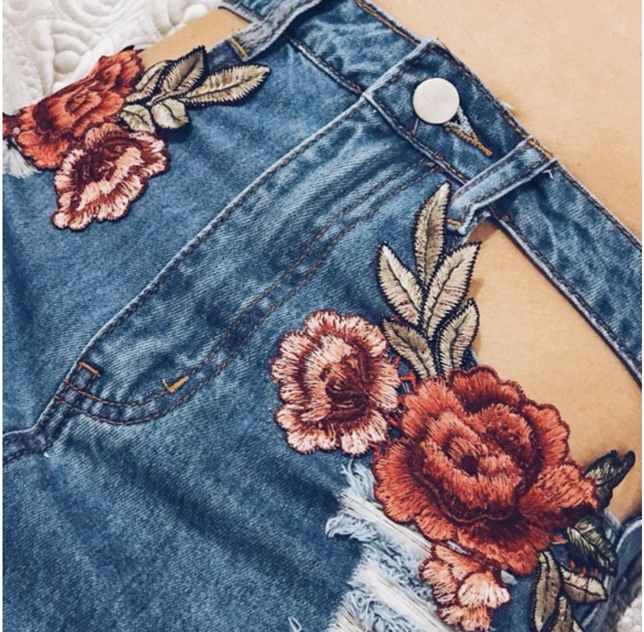Детайлът, който ги отличава, е деликатната бродерия **роза**, апликирана върху зоната на **страничните джобове** . Тези флорални акценти придават романтичен и оригинален вид на изделието, превръщайки класическия артикул в такъв с индивидуалност. Бродерията е изработена с внимание към детайла, като перфектно допълва здравата текстура на денима с деликатен и привлекателен контраст.