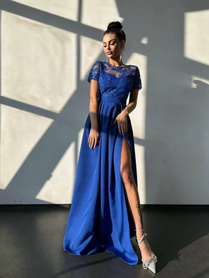 Тази вечерна рокля от бродирана дантела и широка еластична тафта е идеална за жени, които искат да блеснат и да се чувстват като истинска кралица на специални събития. С внимание към детайла и подходящи аксесоари, тази рокля ще привлече погледите и ще създаде незабравими спомени.