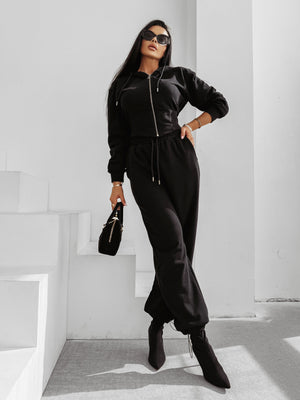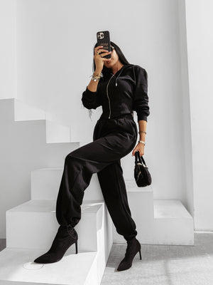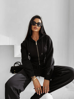 Изтънченост и комфорт в един комплект! Черният анцуг Heba е идеалният избор за дните, когато искате да изглеждате безупречно, без да се отказвате от лекотата. Изработен от висококачествен материал French Terry , той предлага приятно усещане върху кожата и модерна кройка, която подчертава силуета.