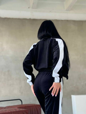 В заключение, дамският кадифен анцуг с блуза с цип и раирани разкроени панталони е перфектна комбинация от елегантност, комфорт и модерен стил. Той е идеален избор за жени, които искат да изглеждат добре и да се чувстват комфортно едновременно, добавяйки нотка лукс към всеки ден.