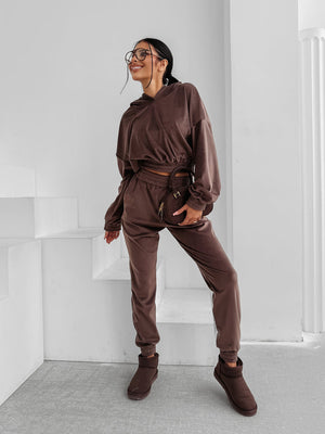 Анцугът Mona Brown съчетава елегантността на кадифето с лекотата на модерния дизайн, идеален за дни, когато искате да изглеждате добре без усилие. Изработен от висококачествен мек кадифе , този комплект предлага мека текстура, приятна на допир и луксозен вид. Блузата е с къса кройка, с ластик на талията и ръкавите, а панталонът има ластик на талията и свободна кройка за пълна свобода на движение.