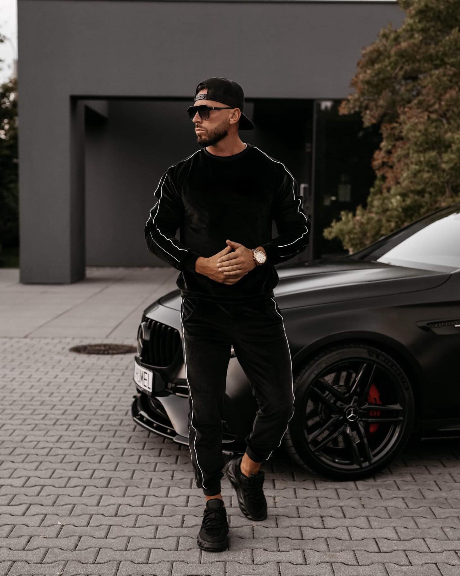 Мъжкият кадифен анцуг е перфектен за мъже, които искат да се чувстват комфортно и елегантно в същото време, като е идеален за дните, когато искате да комбинирате небрежен стил с нотка лукс.