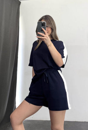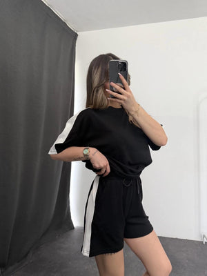 The women's set, consisting of a blouse and shorts, is a particularly elegant and comfortable choice, perfect for women who want to combine luxury with a modern and functional style. This outfit stands out through carefully crafted details and an eye-catching design.