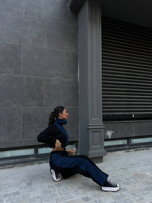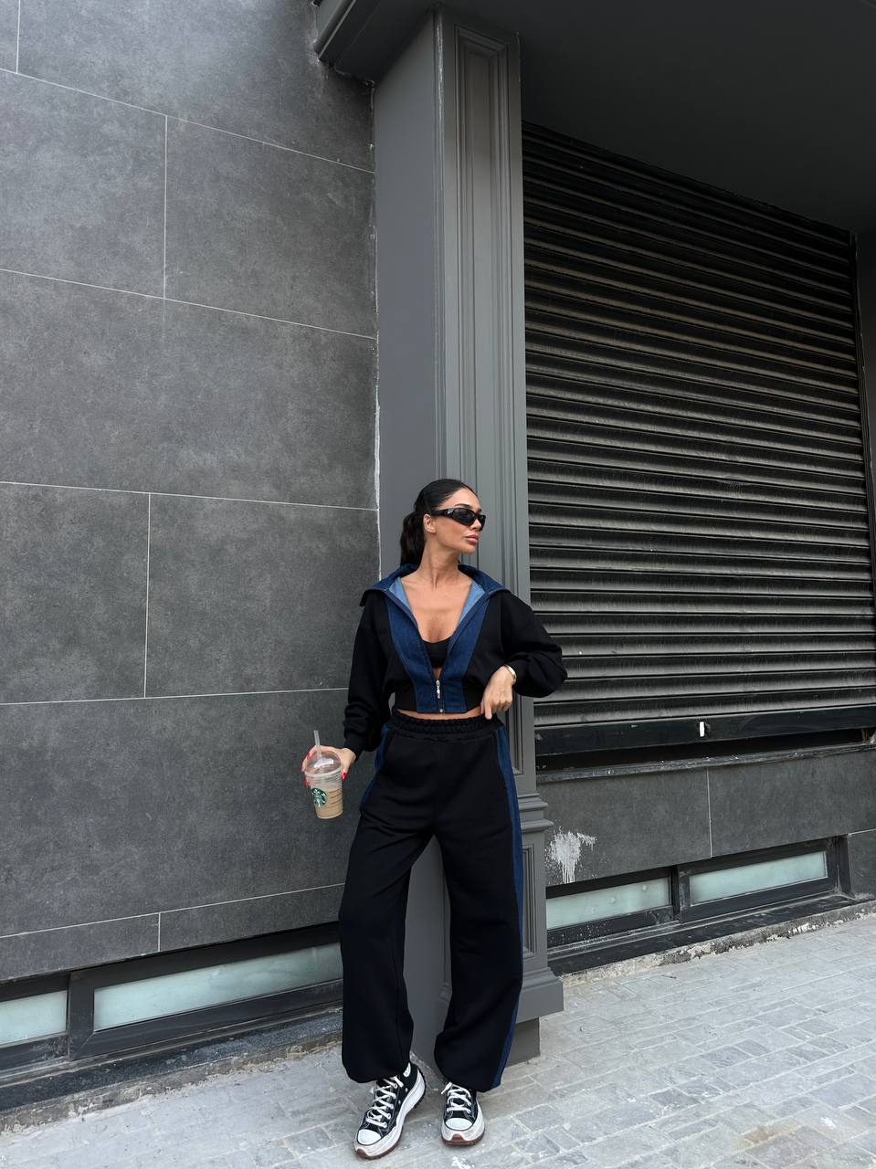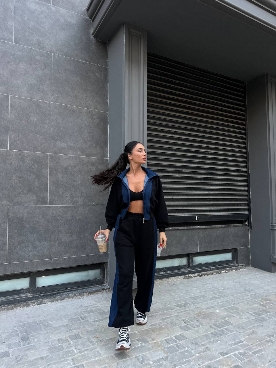 The Roya tracksuit is the perfect choice for women who want a modern and comfortable outfit, but with a sophisticated air. Made of a soft and pleasant to wear material, this model stands out with its denim details that add a touch of style and originality.