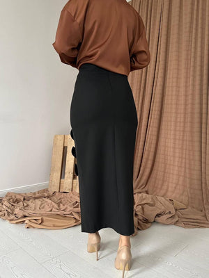 Croiala fustei este midi, adica ajunge undeva pana la jumatatea gambelor, conferind un aspect clasic si elegant. Mularea pe corp evidentiaza frumusetea siluetei si contureaza liniile naturale ale corpului intr-un mod delicat si sofisticat.
