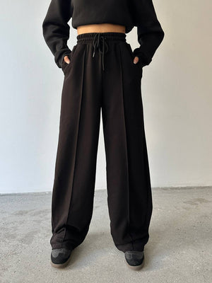 **Materialul** utilizat pentru acesti pantaloni french terry bumbac, tesaturi fluide , ceea ce ii face potriviti pentru diferite ocazii, fie ca este vorba despre un eveniment formal, o iesire casual, sau chiar pentru birou. Acestia ofera o senzatie de lejeritate si confort, permitand miscarea naturala, dar pastrand un aspect rafinat.