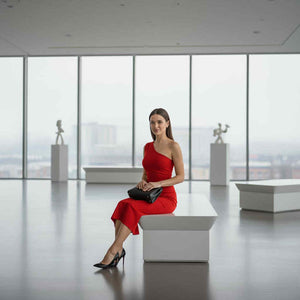 Designul asimetric, cu un umăr gol și o deschidere subtilă pe picior, oferă un aer seducător și sofisticat, ideal pentru seri elegante, petreceri sau evenimente speciale. Nuanța intensă de roșu aprins adaugă încredere și carismă fiecărei apariții.