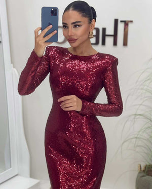 Aceasta rochie midi din paiete este alegerea perfecta pentru femeile care isi doresc sa se simta increzatoare, elegante si irezistibile, indiferent de eveniment.