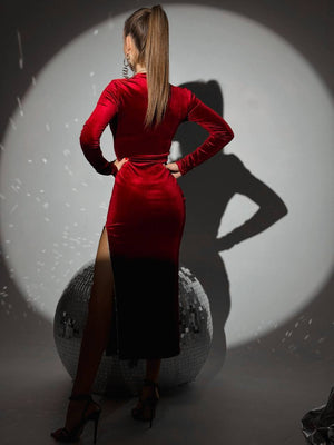 Rochia lunga din catifea, cu slit lateral si decorata cu strasuri aplicate pe slit, este o piesa sofisticata si de impact, creata pentru momentele in care doresti sa radiezi eleganta si glamour. Confectionata dintr-un material catifelat si luxuriant, aceasta rochie emana rafinament si senzualitate, fiind ideala pentru evenimente speciale sau gale.