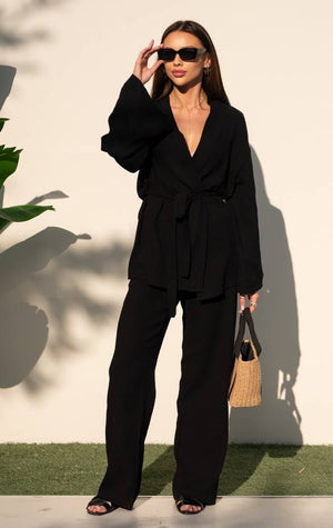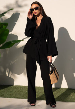 Acest set pentru femei, format din două piese, este combinația perfectă între eleganța fără efort și stilul contemporan, ideal pentru sezonul cald. Ținuta este compusă dintr-o cămașă cu mâneci lungi și o pereche de pantaloni scurți, oferind un look echilibrat și versatil, perfect pentru plimbări prin oraș, ieșiri casual sau vacanțe.