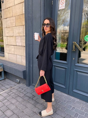 Acest set pentru femei, format din două piese, este combinația perfectă între eleganța fără efort și stilul contemporan, ideal pentru sezonul cald. Ținuta este compusă dintr-un cardigan cu mâneci lungi și o pereche de pantaloni midi, oferind un look echilibrat și versatil, perfect pentru plimbări prin oraș, ieșiri casual sau vacanțe.