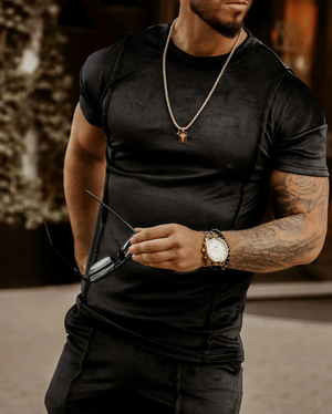 Treningul de barbati din catifea este o alegere eleganta si confortabila pentru momentele relaxante sau pentru a adauga un strop de rafinament in tinutele casual. Iata o descriere detaliata a acestuia: