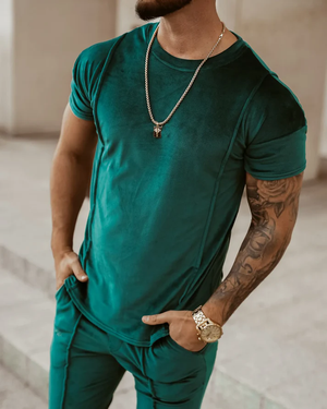 Treningul de barbati din catifea este o alegere eleganta si confortabila pentru momentele relaxante sau pentru a adauga un strop de rafinament in tinutele casual. Iata o descriere detaliata a acestuia: