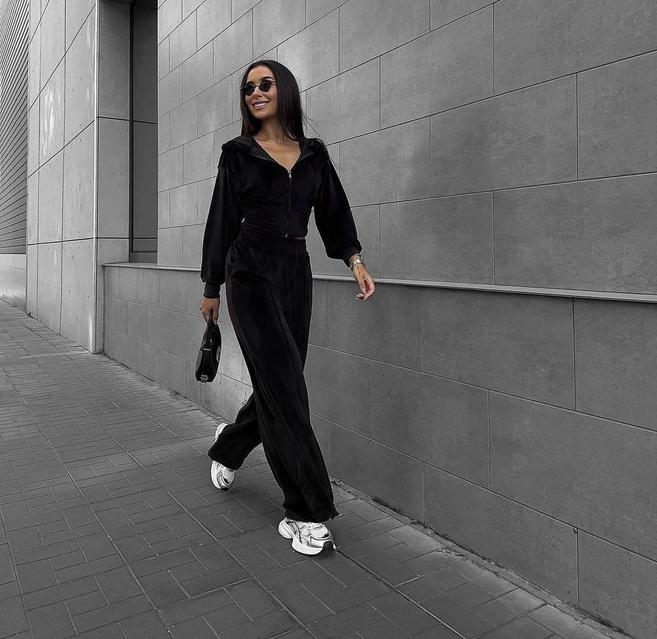 Acest trening din catifea este perfect pentru a fi purtat cu adidasi sau pantofi sport eleganti pentru un look casual-chic, dar poate fi asortat si cu accesorii mai sofisticate pentru a crea o tinuta demna de evenimente speciale.
