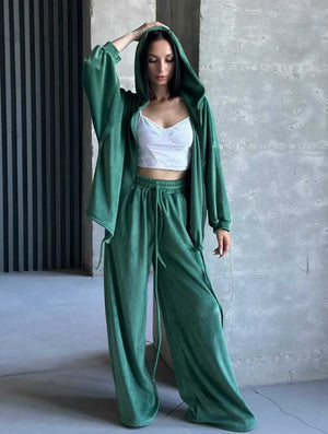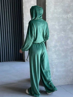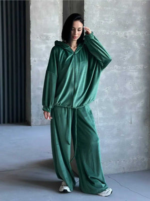 Set 2 piese: bluză cu fermoar + pantaloni largi
