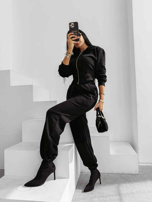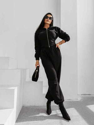 Rafinament și confort într-un singur set! Treningul Heba Negru este alegerea ideală pentru zilele în care vrei să arăți impecabil, fără a renunța la lejeritate. Realizat din material French Terry de calitate premium, oferă o senzație plăcută pe piele și o croială modernă care pune în valoare silueta.