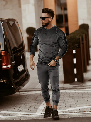 Treningul pentru barbati din catifea este o alegere eleganta si confortabila, perfecta pentru a adauga un strop de lux in tinutele casual. Iata o descriere detaliata a acestuia: