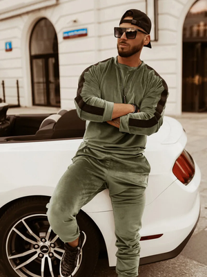 Treningul pentru barbati din catifea este o alegere eleganta si confortabila, perfecta pentru a adauga un strop de lux in tinutele casual. Iata o descriere detaliata a acestuia: