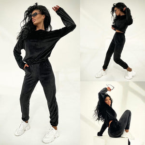 Treningul din catifea de dama este perfect pentru femeile care isi doresc sa se simta confortabil si elegante in acelasi timp, fiind ideal pentru zilele in care vrei sa imbini stilul casual cu o nota de lux.
