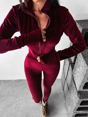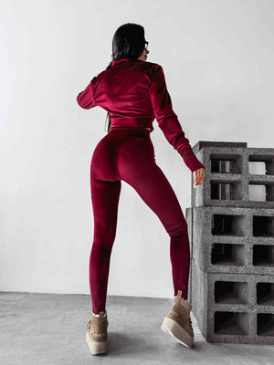 Acest trening din catifea redefineste stilul casual-elegant prin designul sau sofisticat si materialul luxos. Realizat dintr-o catifea moale, cu o textura fina si o stralucire subtila, setul imbina perfect confortul cu rafinamentul. Tesatura elastica se adapteaza delicat formei corpului, oferind libertate de miscare si o senzatie placuta la purtare.