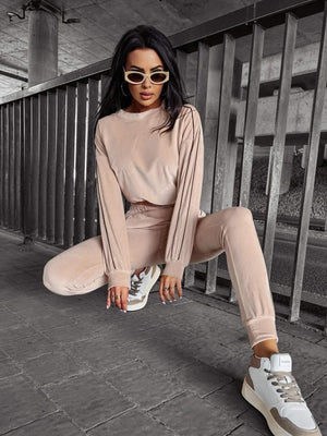 Treningul din catifea de dama este perfect pentru femeile care isi doresc sa se simta confortabil si elegante in acelasi timp, fiind ideal pentru zilele in care vrei sa imbini stilul casual cu o nota de lux.