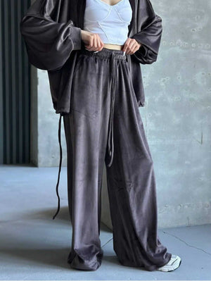 • Set 2 piese: bluză cu fermoar + pantaloni largi