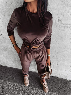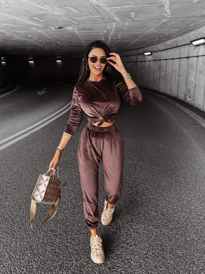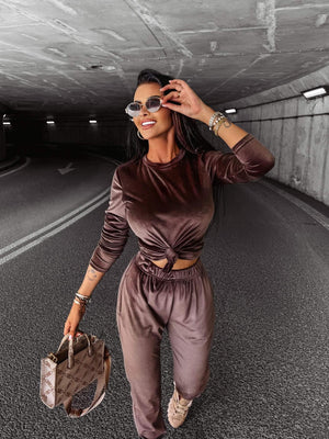 Treningul din catifea de dama este perfect pentru femeile care isi doresc sa se simta confortabil si elegante in acelasi timp, fiind ideal pentru zilele in care vrei sa imbini stilul casual cu o nota de lux.