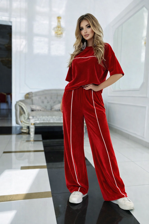 Treningul Diana Rosu este alegerea perfectă pentru un look relaxat, dar sofisticat. Realizat din catifea soft premium, oferă o textură fină, plăcută la atingere și un aspect elegant, ușor lucios.